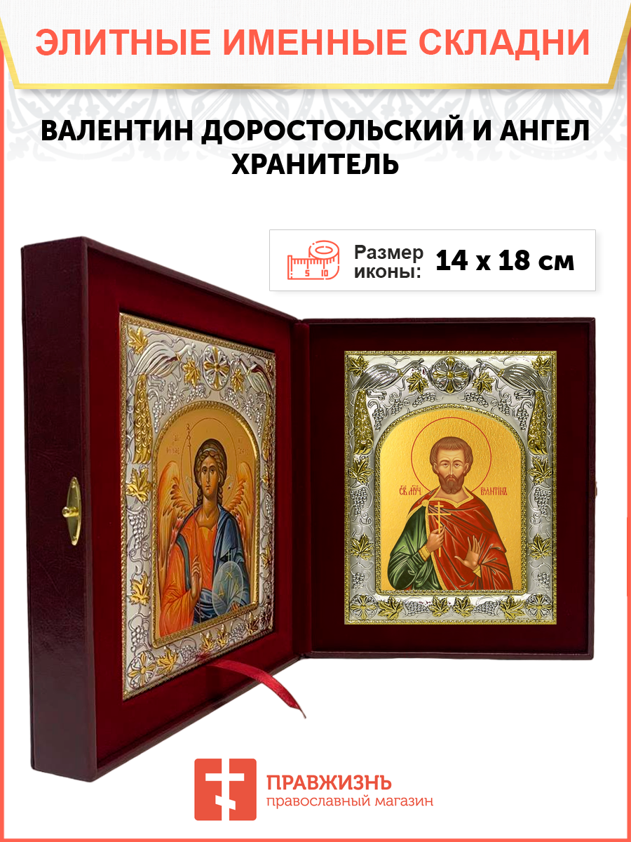 Икона складень Валентин Доростольский мученик и Ангел Хранитель 14 х 18 см