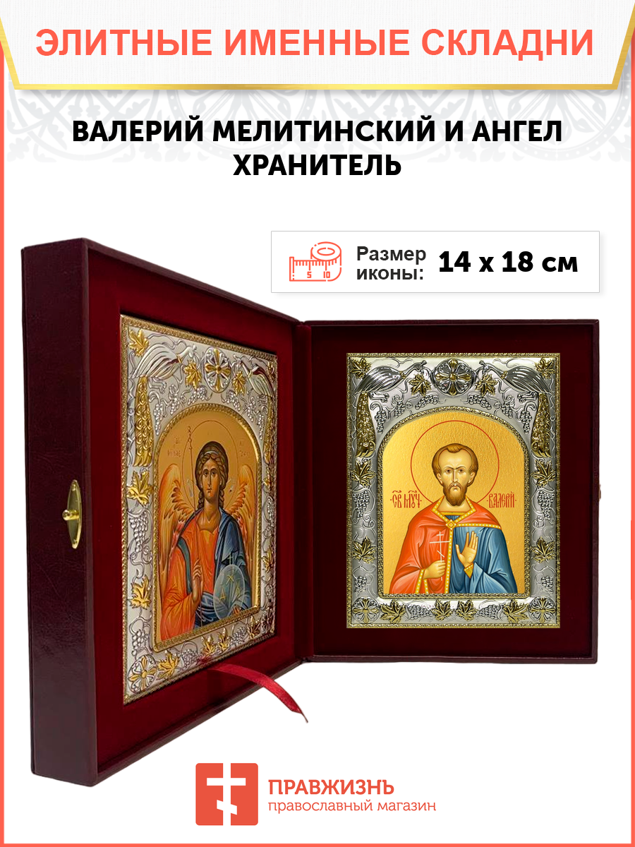 Икона складень Валерий Мелитинский мученик и Ангел Хранитель 14 х 18 см