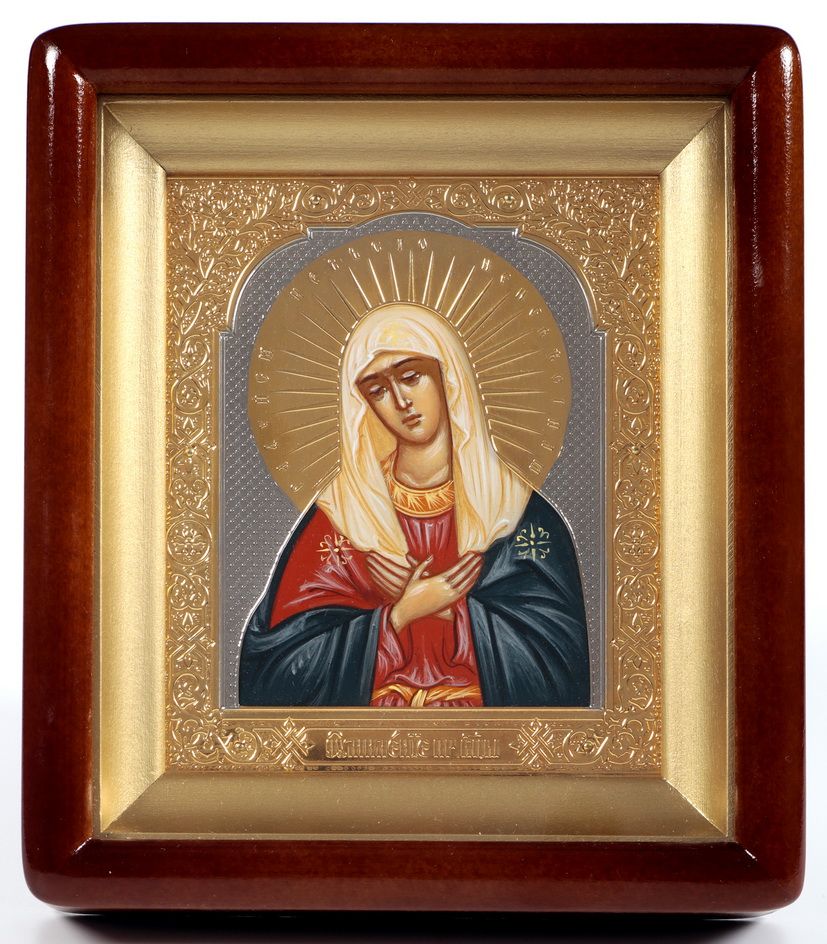 Икона живописная в киоте 11х13 масло, риза открытая, латунь, золочение, киот №2 Умиление БМ