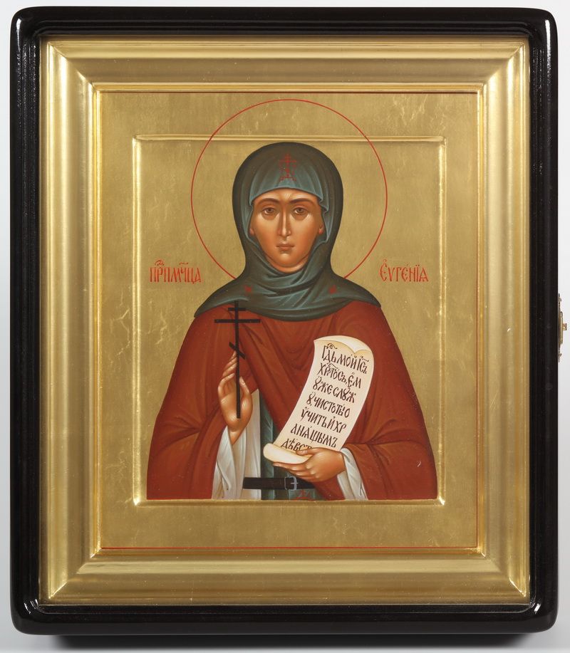 Икона живописная в киоте 24х30 масло, золоченый фон, киот №1 Евгения