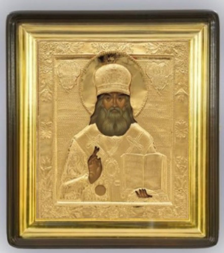 Икона живописная в киоте 30х40 масло, риза №41, киот №1 Иннокентий