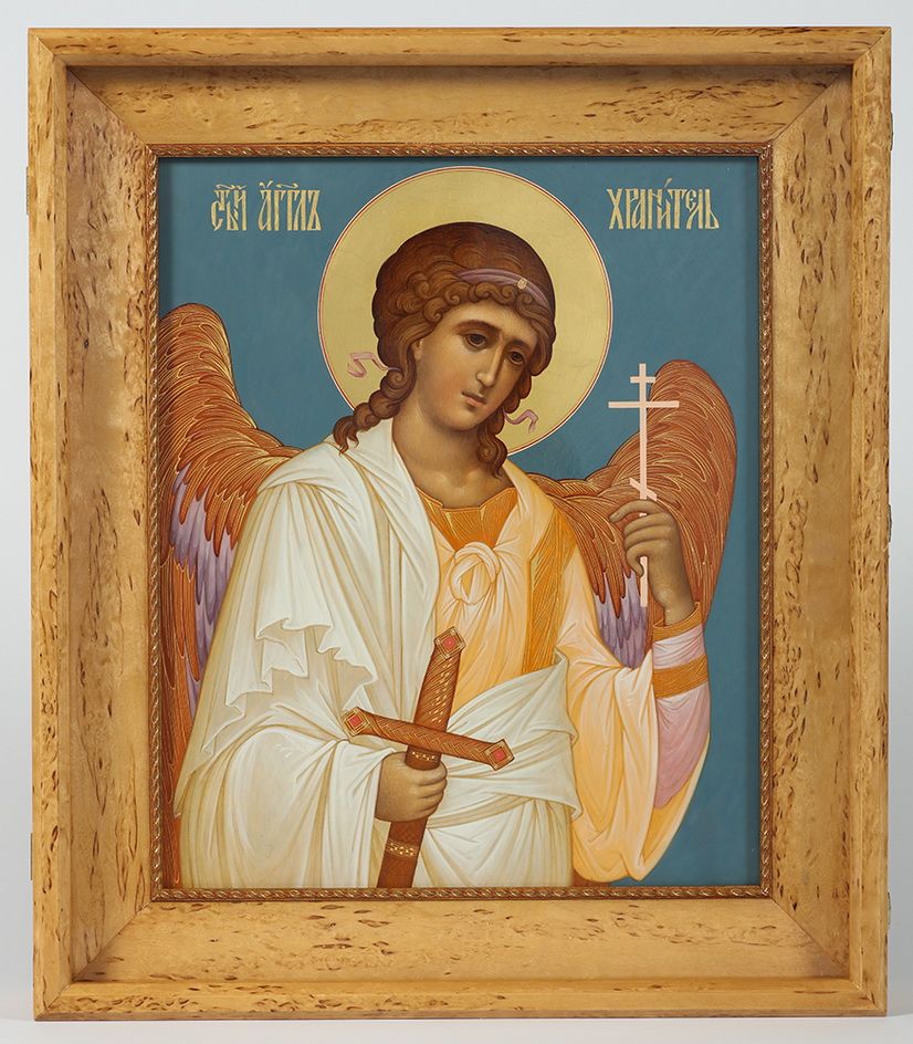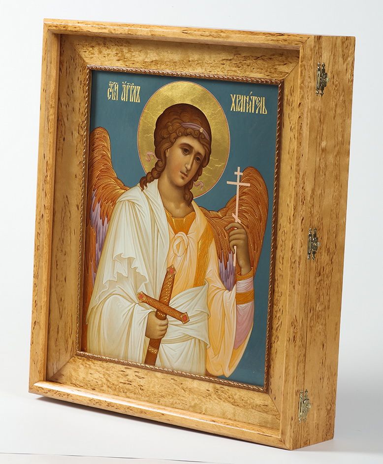 Икона живописная в киоте 30х40 масло, золоченый нимб, в киоте №8 Ангел-Хранитель