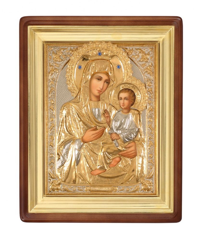 Риза частичное золочение, камни, киот липа, подрамник декоративное золочение