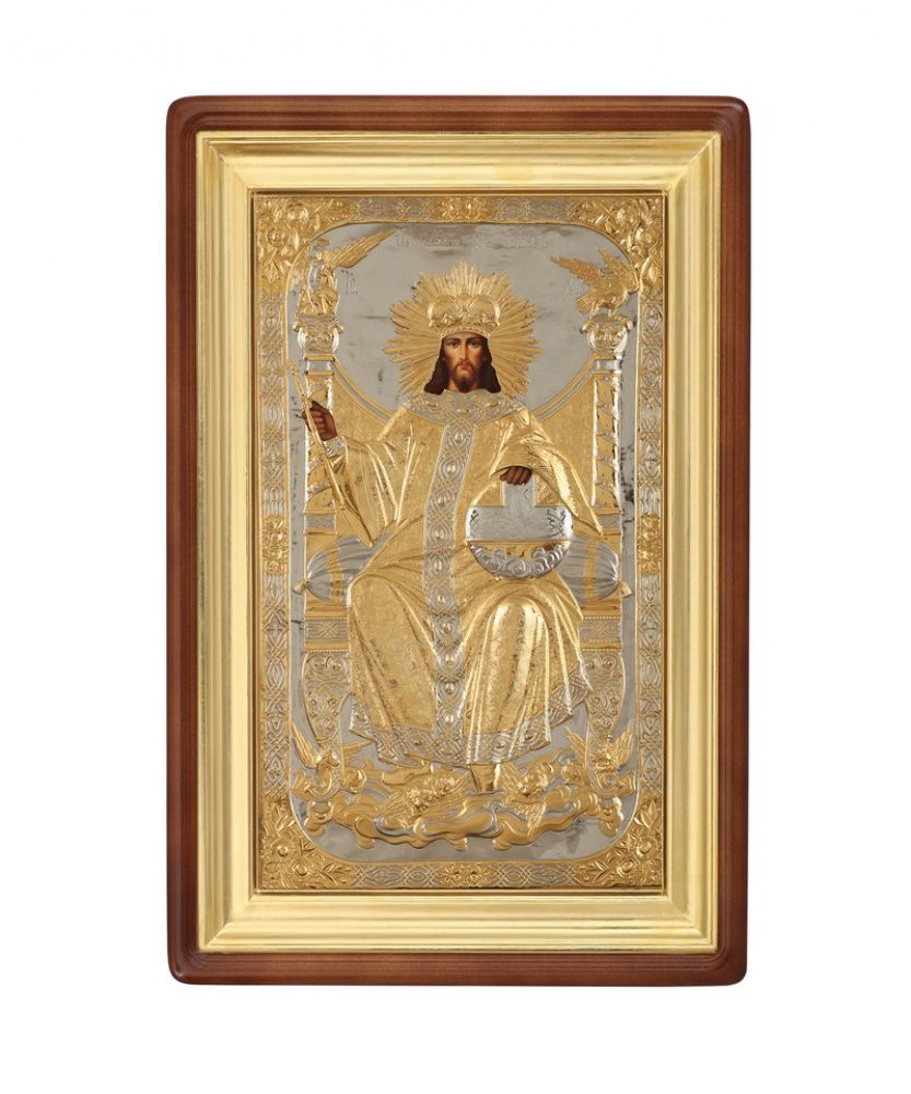 Икона живописная в киоте 75х130 масло, риза №181, киот №1 Спас на троне