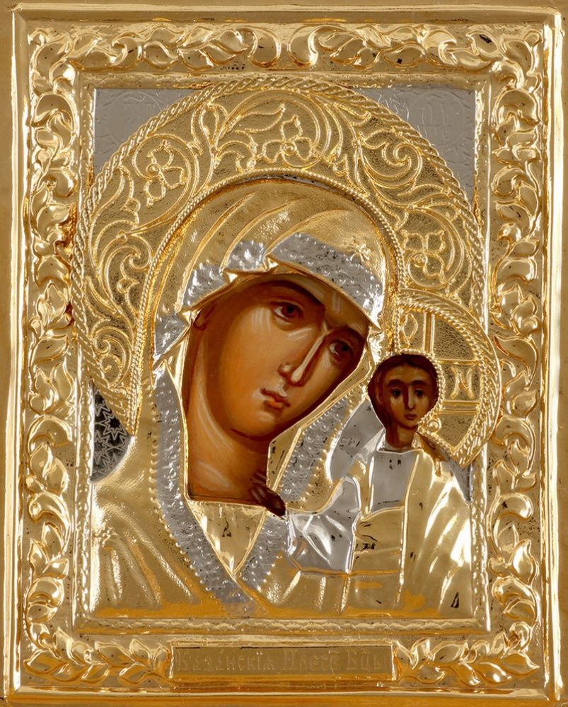 Икона живописная Божией Матери «Казанская» 11х13, масло, риза №11, золочение