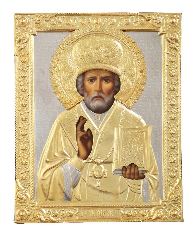 Икона живописная святителя Николая Чудотворца 18х24, масло, риза №51, матовое золочение