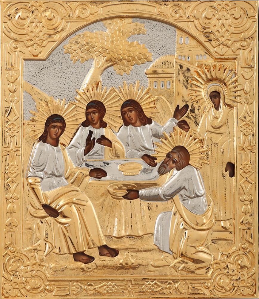 Икона живописная Святой Троицы 24х30, масло, риза №112, золочение
