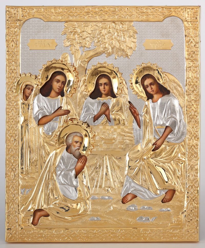 Икона живописная Святой Троицы 24х30 масло, риза №162, золочение