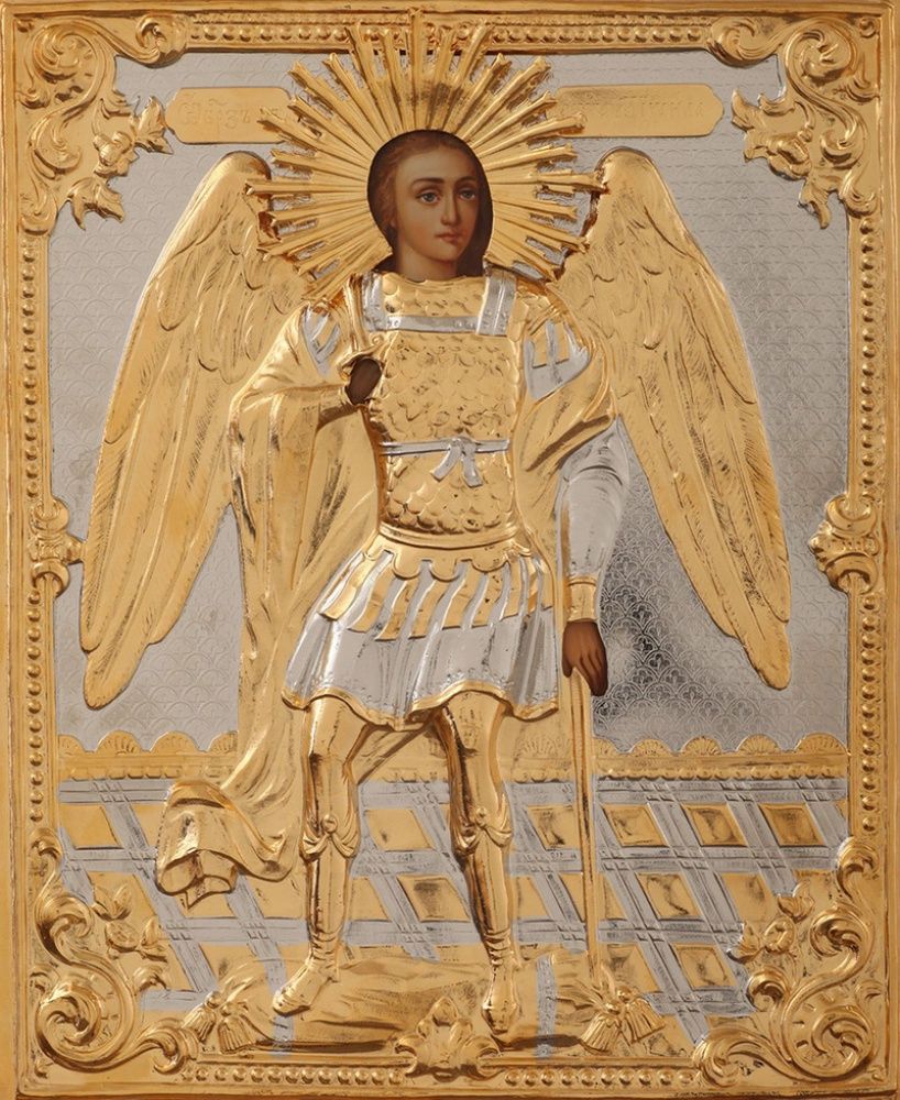 Икона живописная Архангела Михаила 24х30, масло, риза №47, золочение