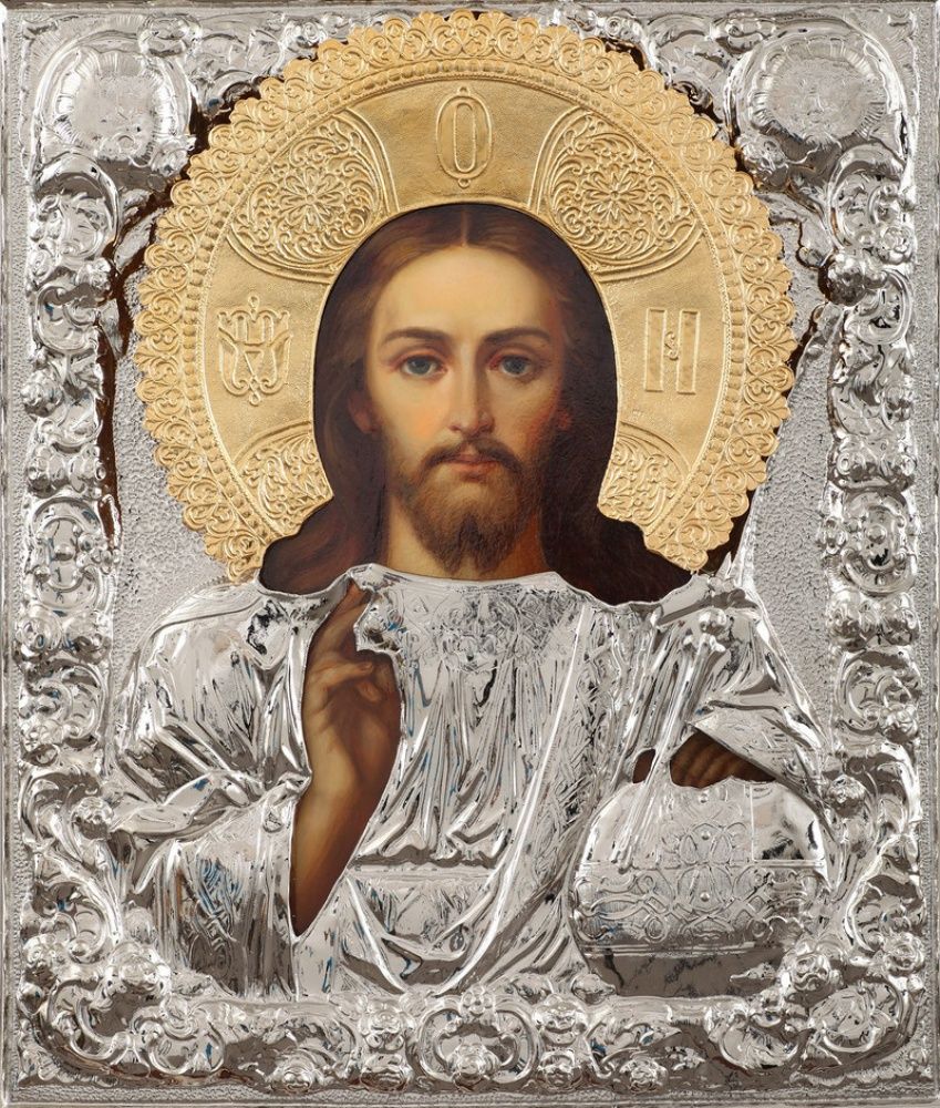 Икона живописная в ризе 24х30 масло, объемная риза № 76А, золочение Спаситель