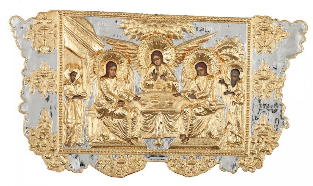 Икона живописная Святой Троицы 35х70, масло, риза №70, золочение