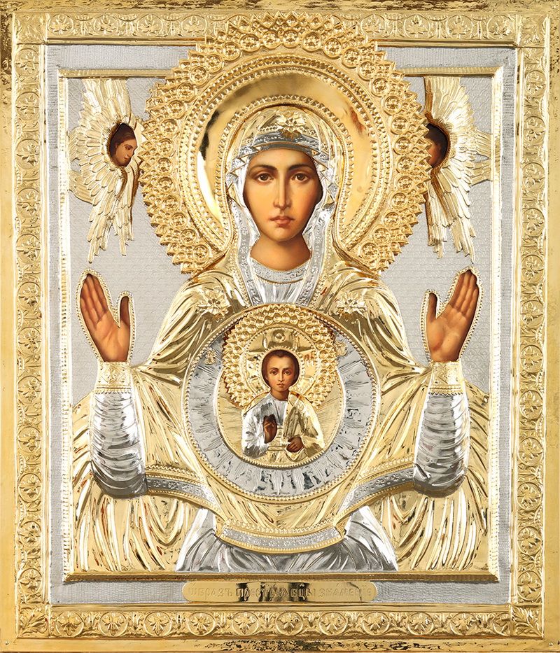 Икона живописная Божией Матери «Знамение» 40х50, масло, риза №278, золочение
