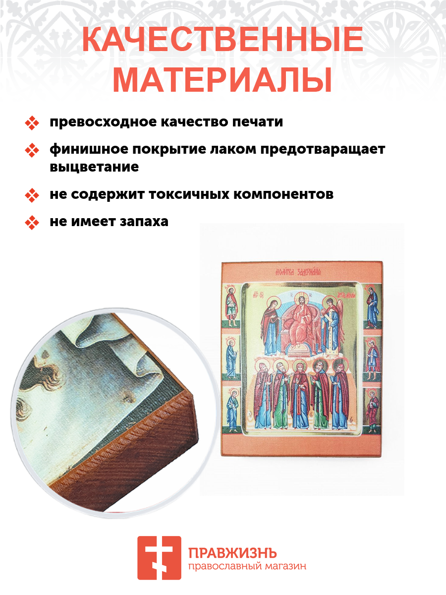 Каждая икона украшена стразами, которые добавляют ей особый блеск и торжественность. Образ выполнен современными минеральными красками, что обеспечивает высокое качество печати и насыщенность цветов, подчеркивающих детали и характер святых. Икона представляет собой идеальное сочетание традиционных элементов и современного дизайна, что делает ее отличным выбором для любого интерьера – от классического до современного.