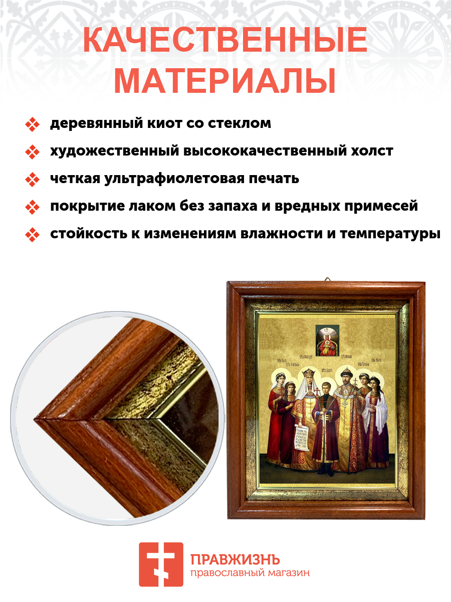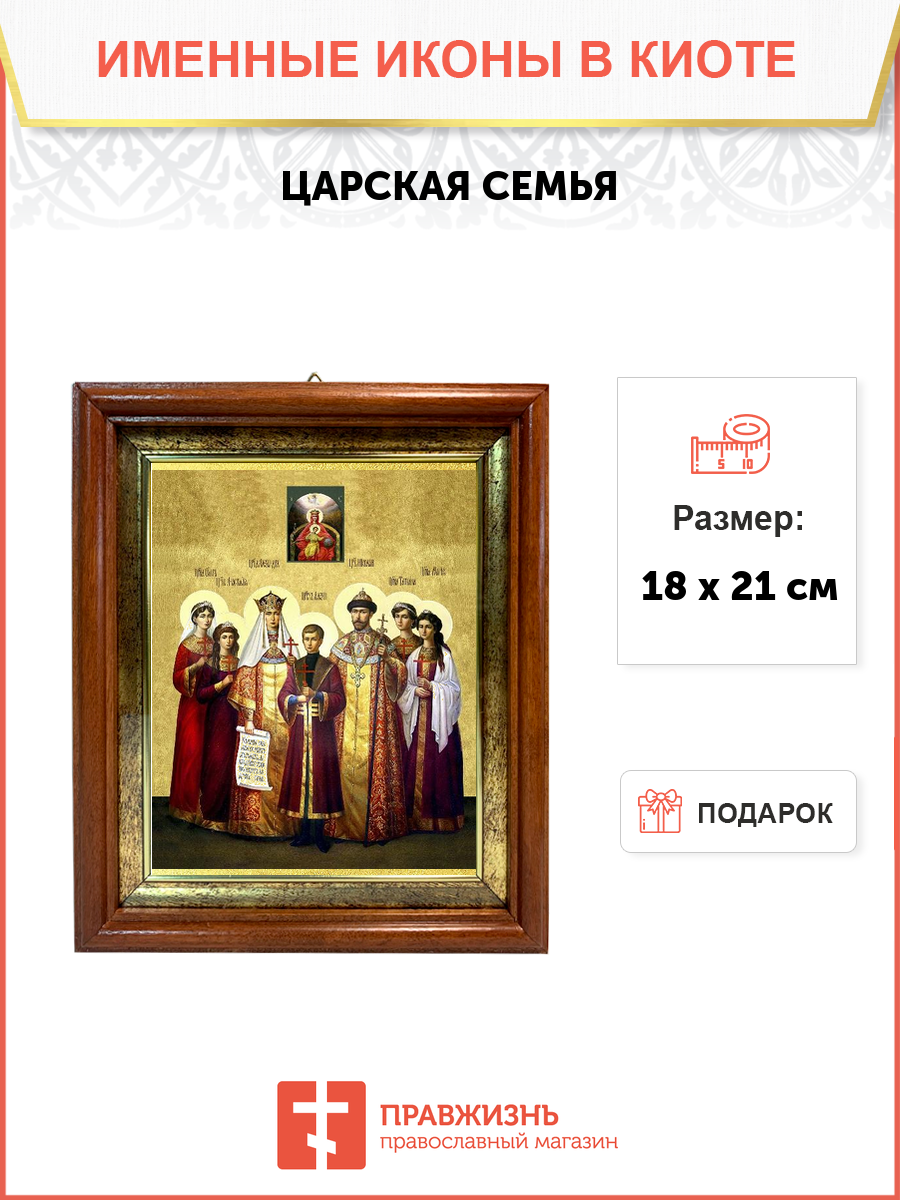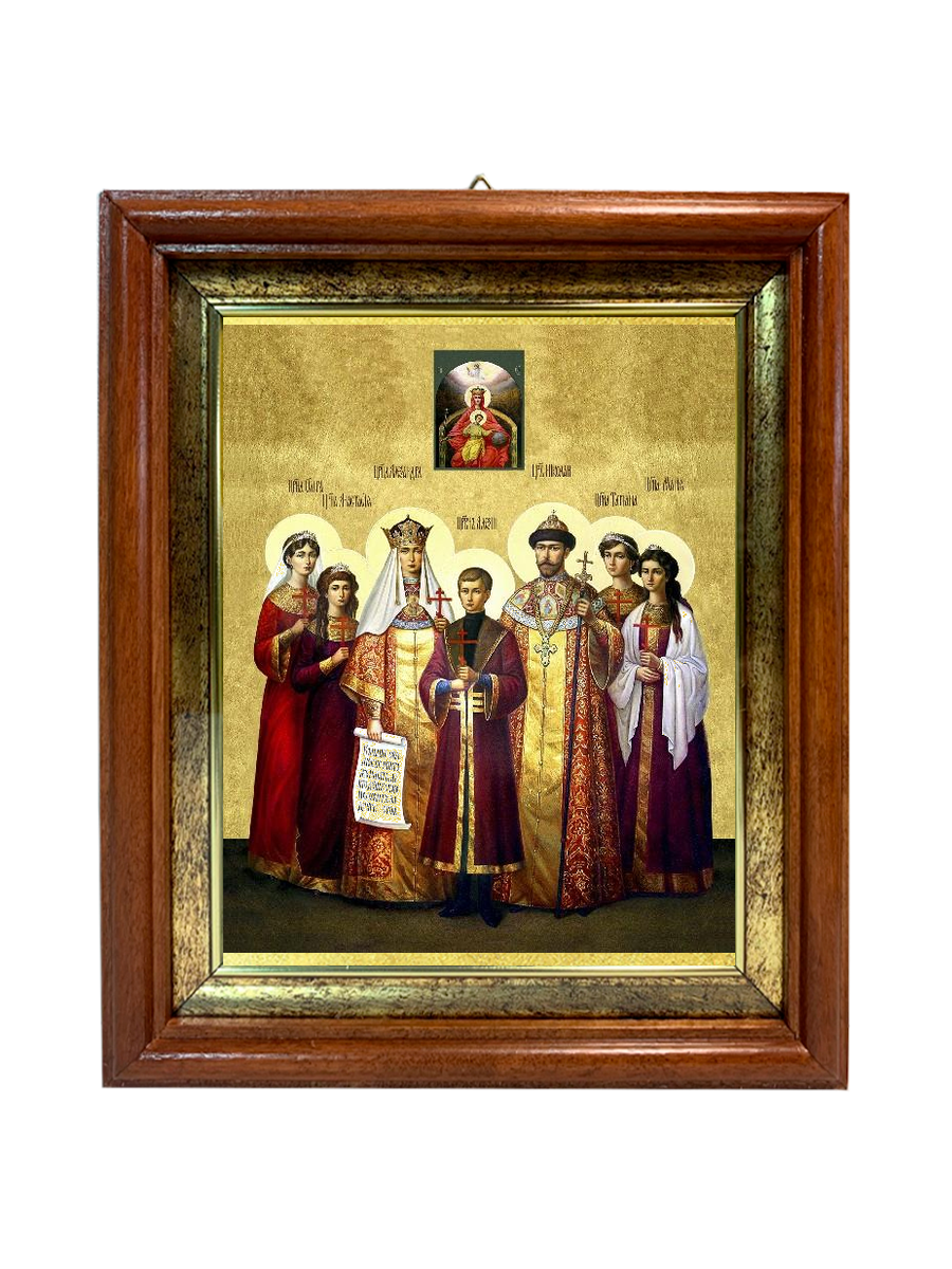 Именная икона Царская Семья на холсте в киоте 001