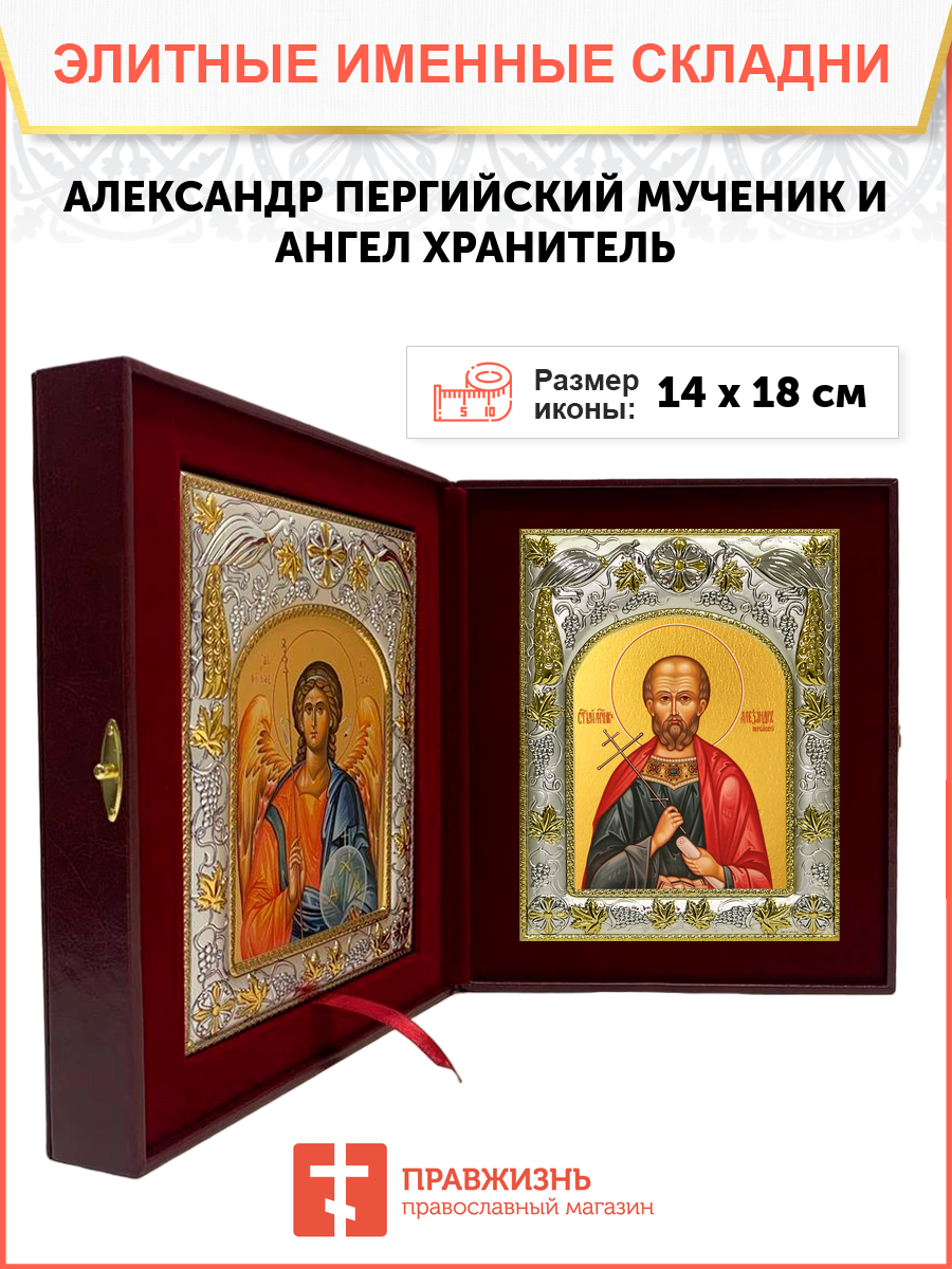 Икона складень Александр Пергийский мученик и Ангел Хранитель 14 х 18 см