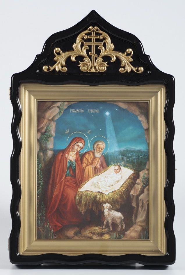 Киот фигурный с резным навершием под икону 24х30 Рождество Христово