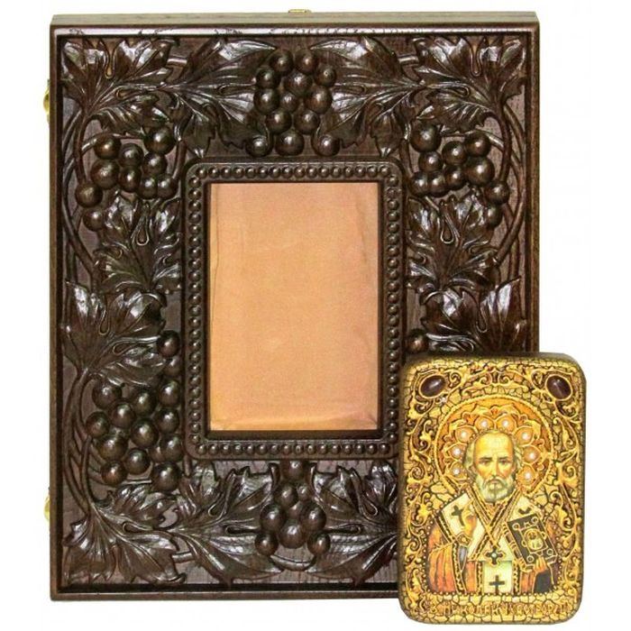 Киот резной из мореного дуба для настольной иконы