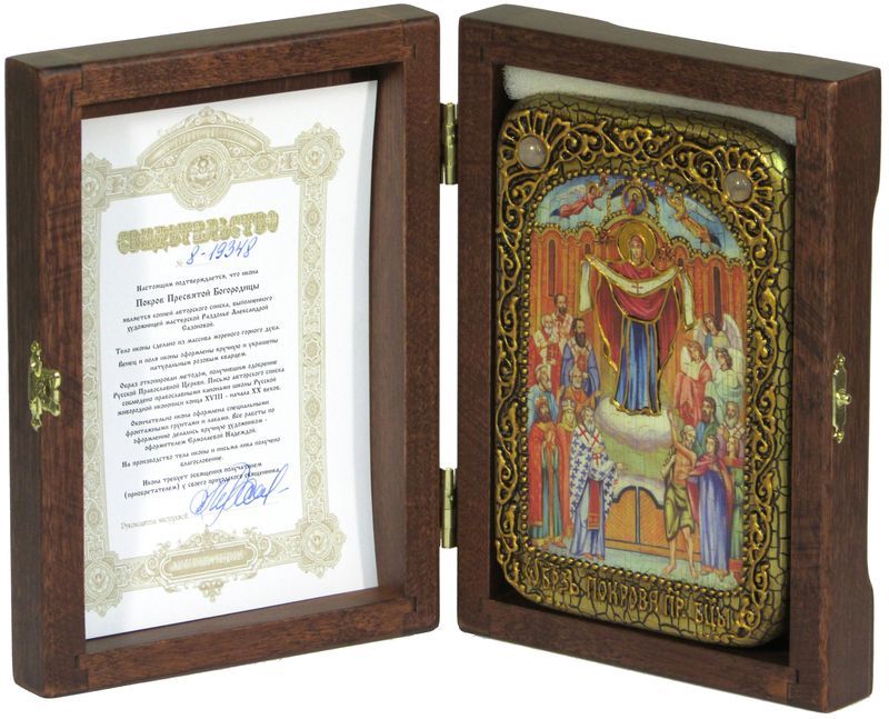 Настольная икона Божией Матери ''Покров'' на мореном дубе