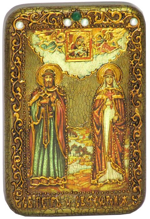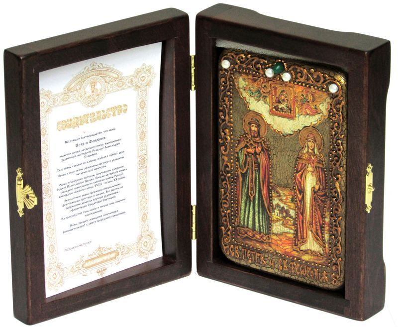 Настольная икона ''Петр и Февронья'' на мореном дубе