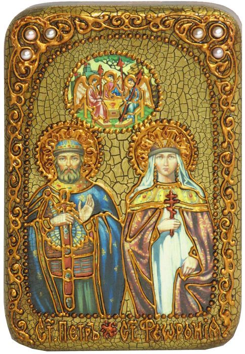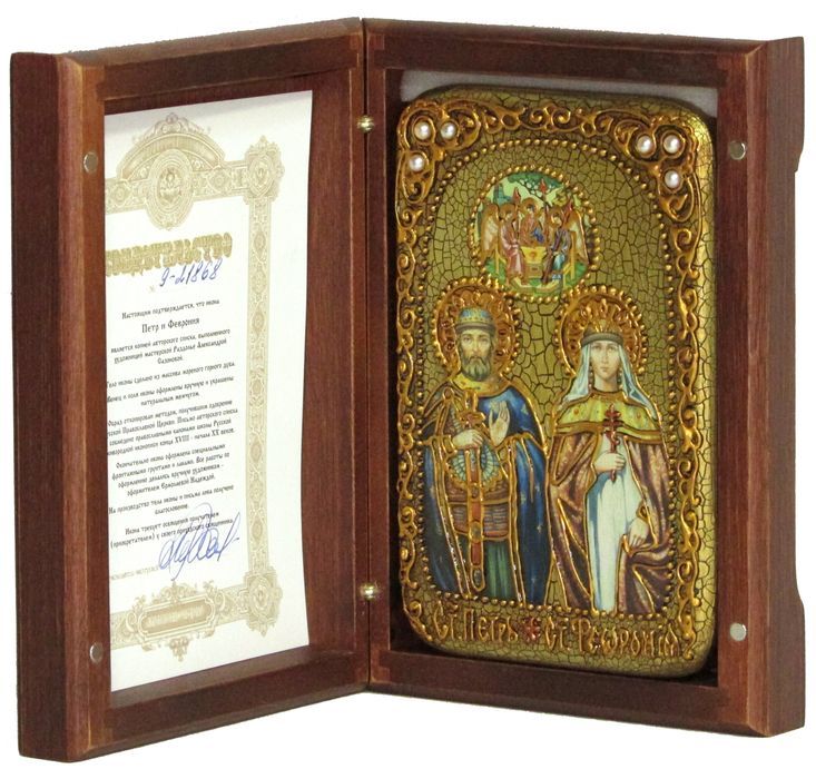 Настольная икона ''Петр и Февронья'' на мореном дубе