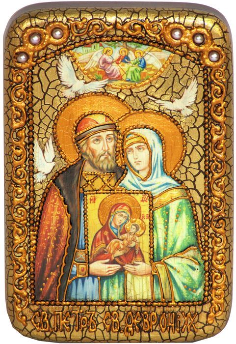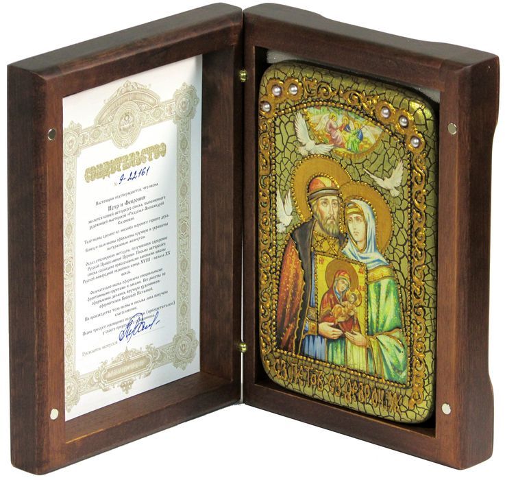 Настольная икона ''Петр и Февронья'' на мореном дубе