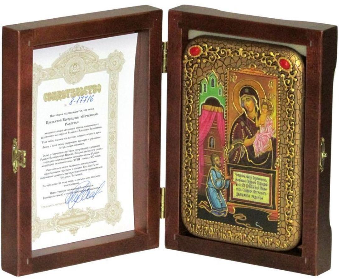 Настольная икона Пресвятой Богородицы ''Нечаянная Радость'' на мореном дубе