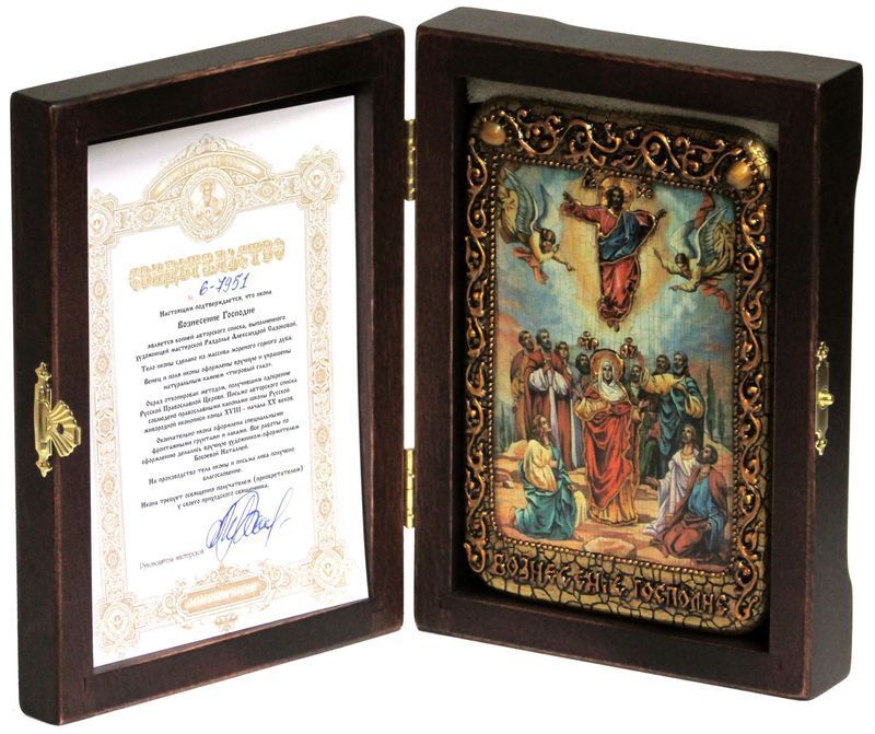 Настольная икона ''Вознесение Господне'' на мореном дубе