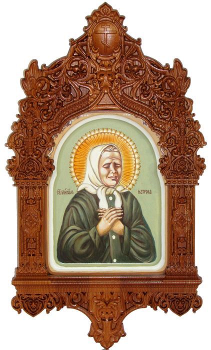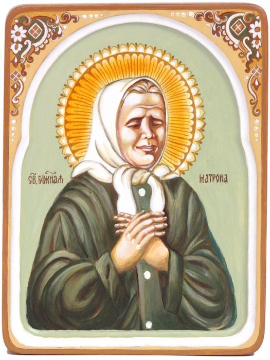 Рукописная икона ''Блаженная старица Матрона Московская'' на кипарисе