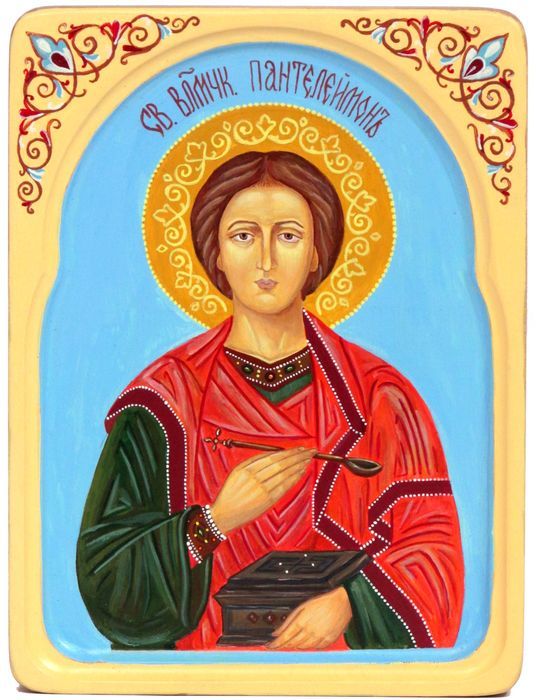 Икона ПАНТЕЛЕИМОН Целитель, Великомученик (РУКОПИСНАЯ, КИПАРИС, ПОДАРОЧНАЯ)