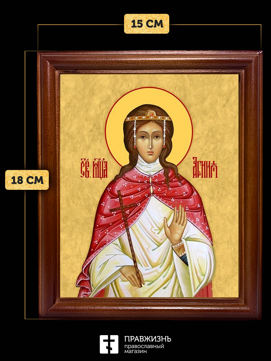 Икона Агния Анна Римская мученица, деревянная рамка со стеклом 15х18х2 см 307