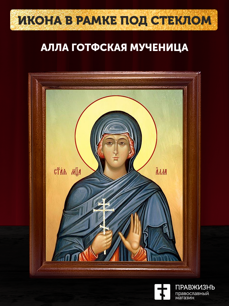 Икона Алла Готфская мученица, деревянная рамка со стеклом 15х18х2 см 023
