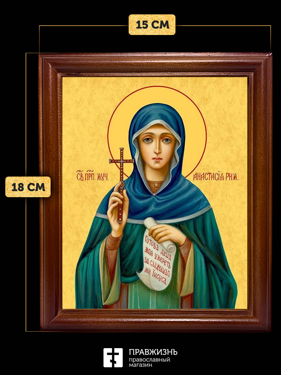 Икона Анастасия Римляныня преподобномученица, деревянная рамка со стеклом 15х18х2 см 381