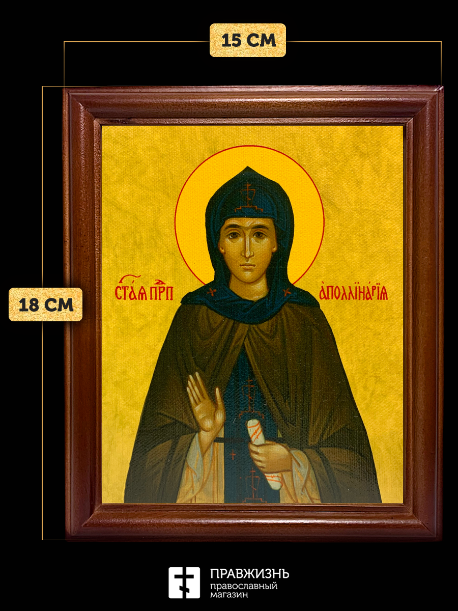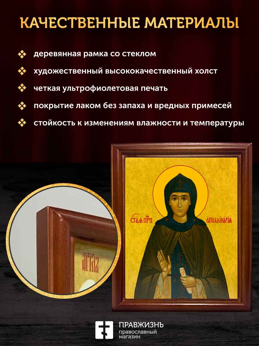Икона Аполлинария преподобная, деревянная рамка со стеклом 15х18х2 см 031
