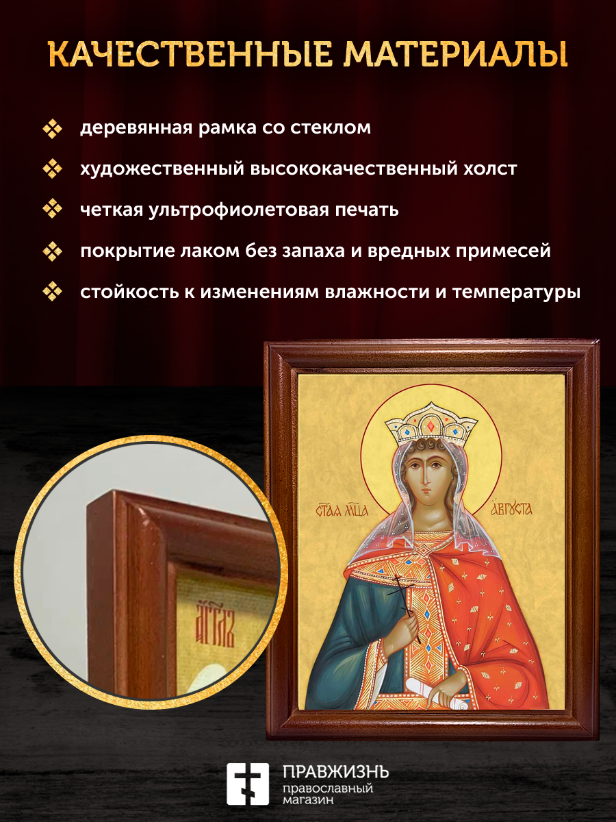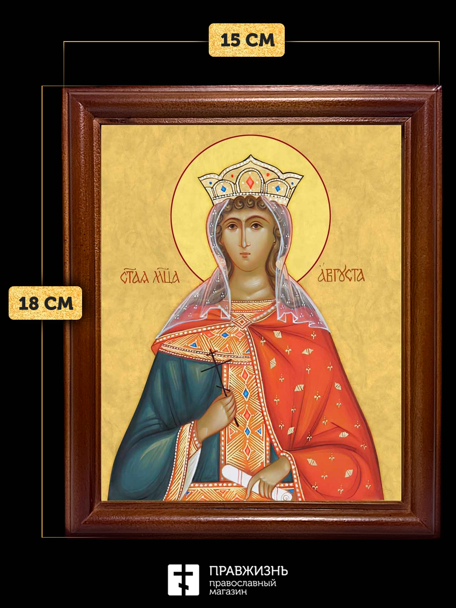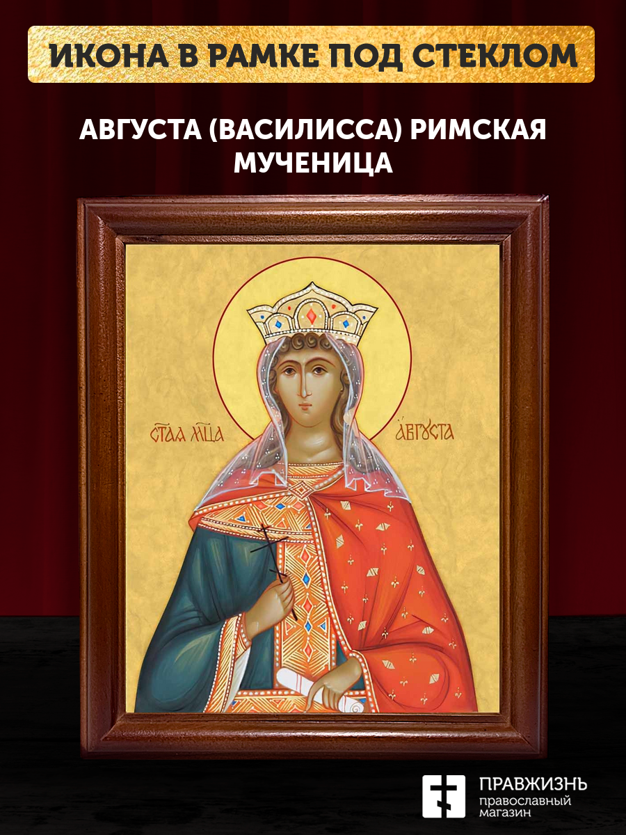 Икона Августа Василисса мученица, деревянная рамка со стеклом 15х18х2 см 506