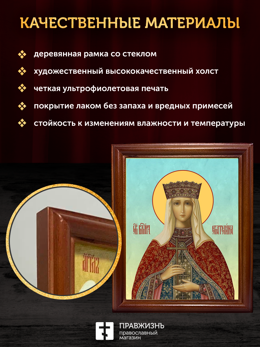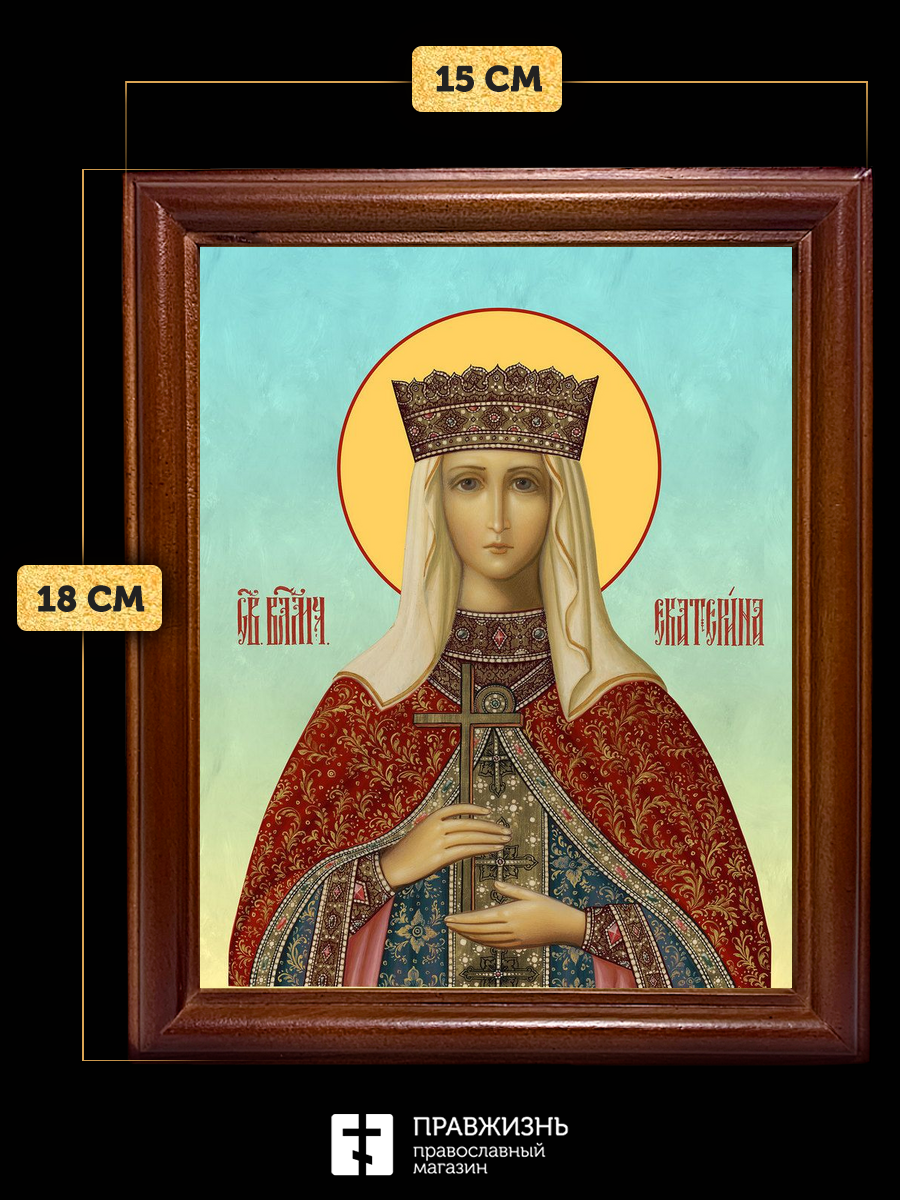 Икона Екатерина Александрийская великомученица, деревянная рамка со стеклом 15х18х2 см 070