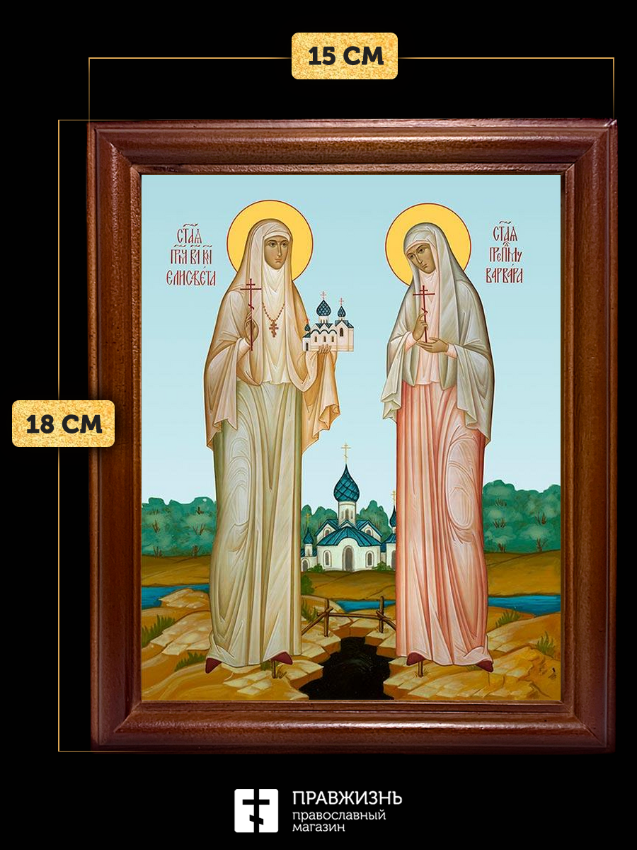 Икона Елизавета Федоровна и Варвара преподобномученица, деревянная рамка со стеклом 15х18х2 см 072 3