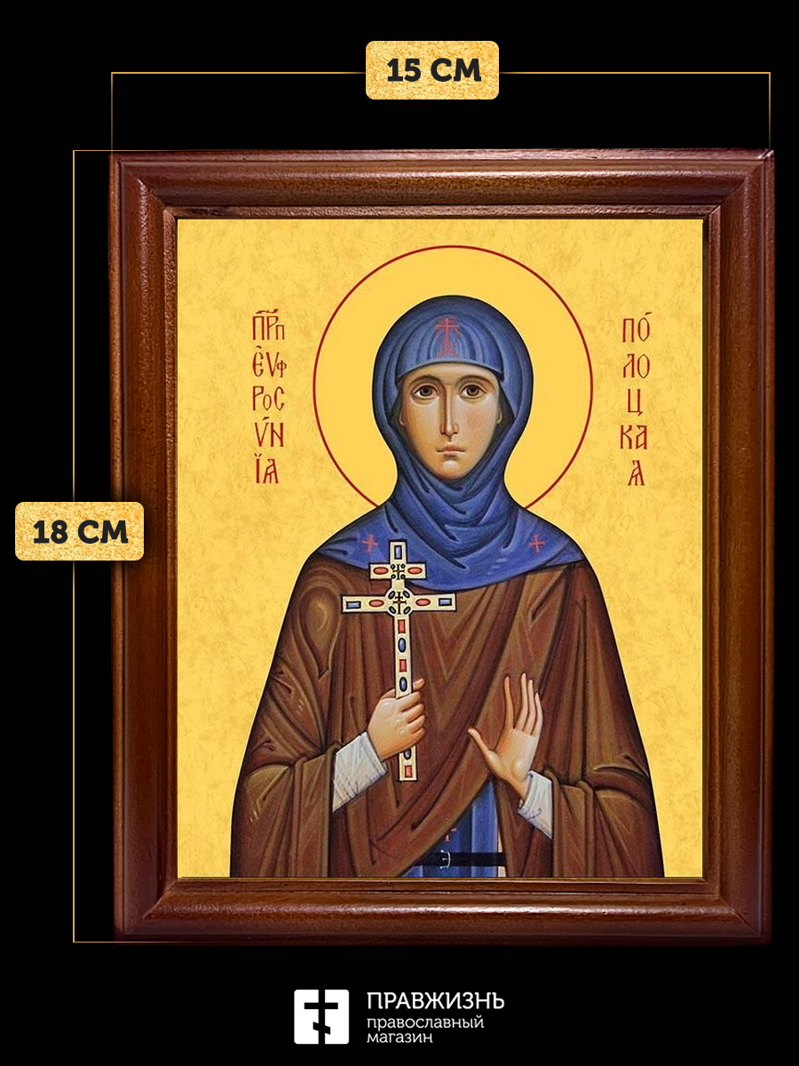 Икона Евфросиния Полоцкая преподобная, деревянная рамка со стеклом 15х18х2 см 196А
