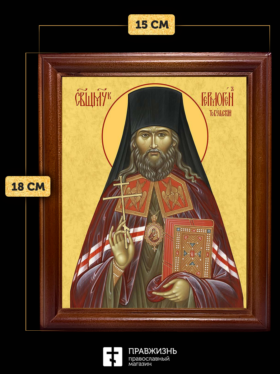 Икона Гермоген Тобольский священномученик, деревянная рамка со стеклом 15х18х2 см 1210