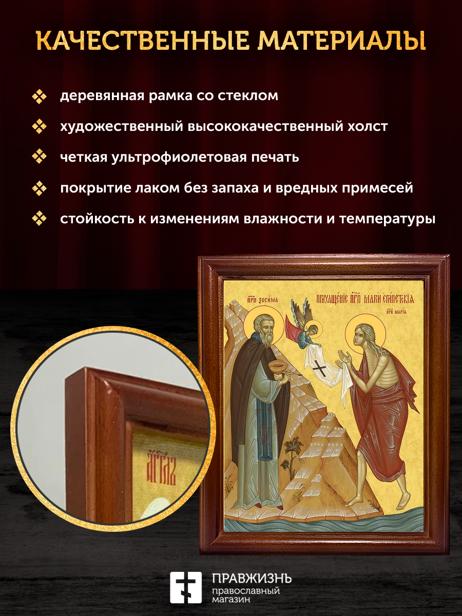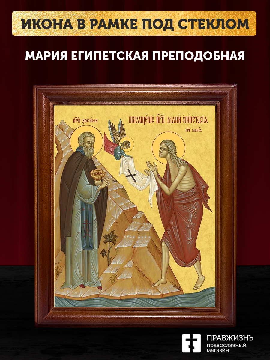 Икона Мария Египетская преподобная, деревянная рамка со стеклом 15х18х2 см 173