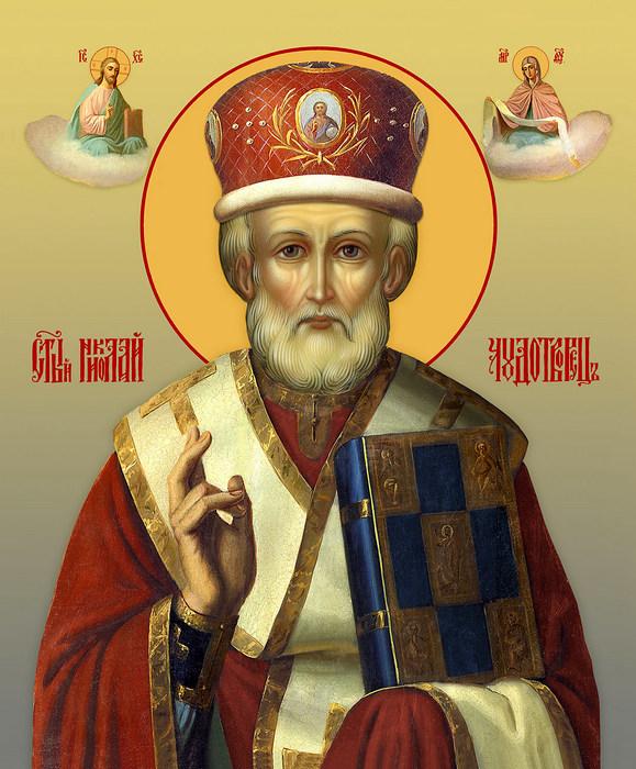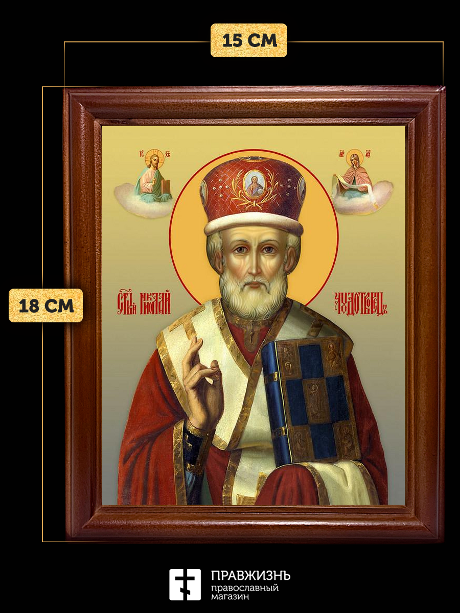 Икона Николай Чудотворец Мирликийский святитель, деревянная рамка со стеклом 15х18х2 см 110