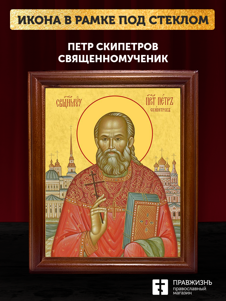 Икона Петр Скипетров священномученик, деревянная рамка со стеклом 15х18х2 см 1249