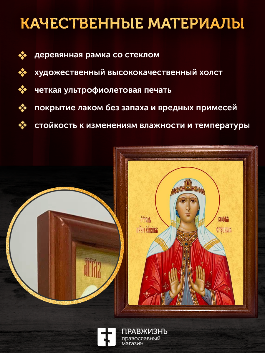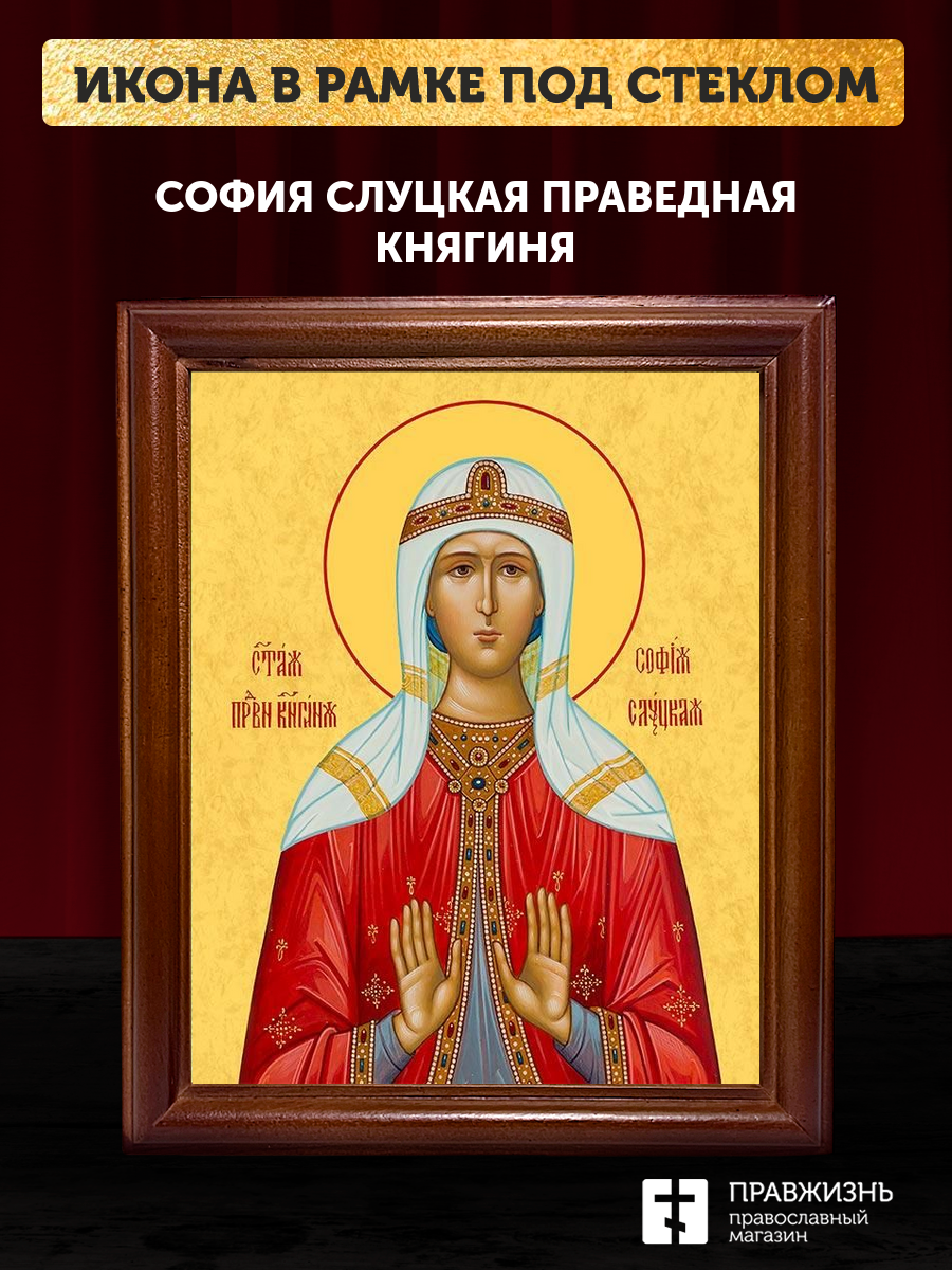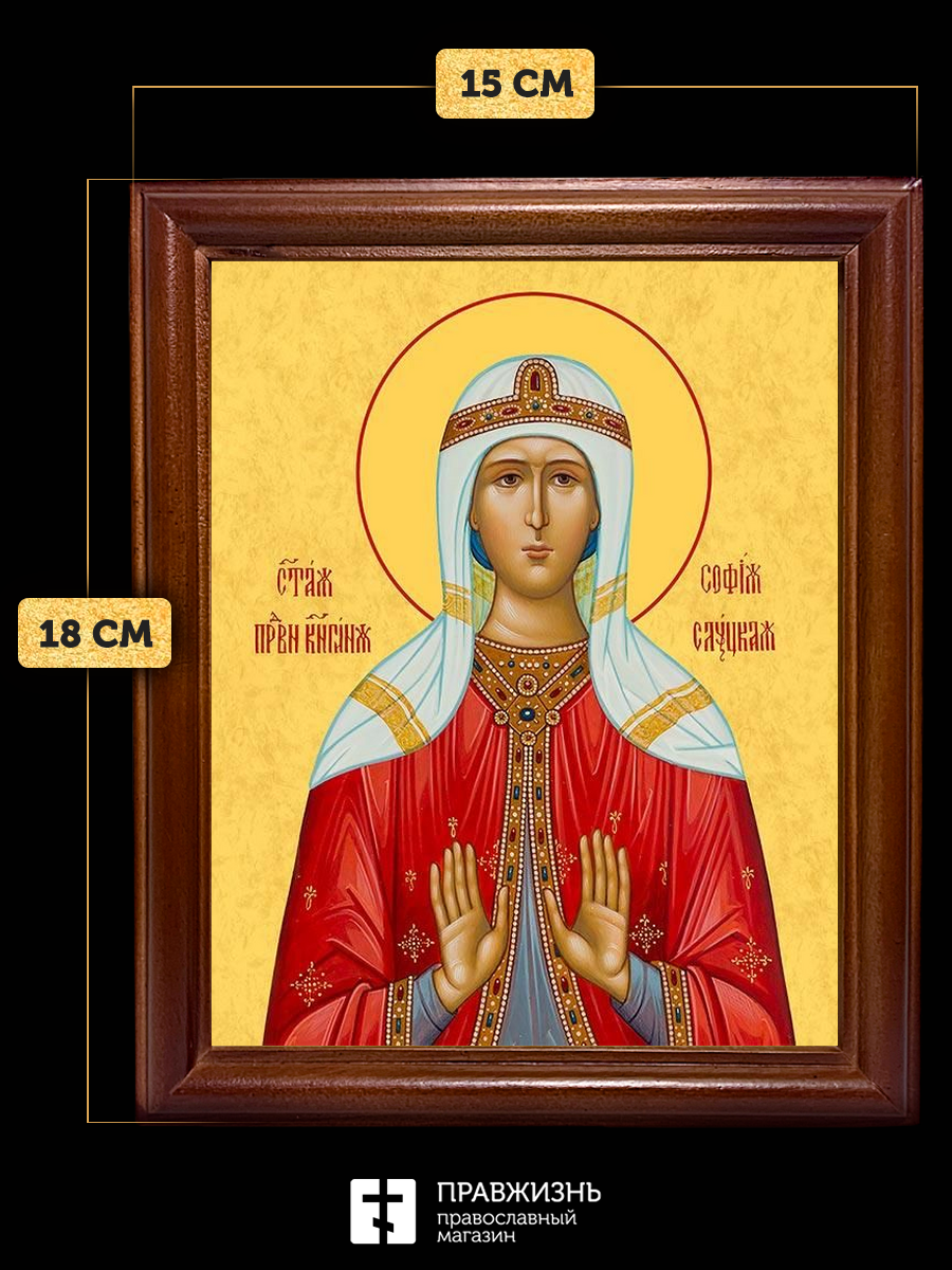 Икона София Слуцкая праведная княгиня, деревянная рамка со стеклом 15х18х2 см 339