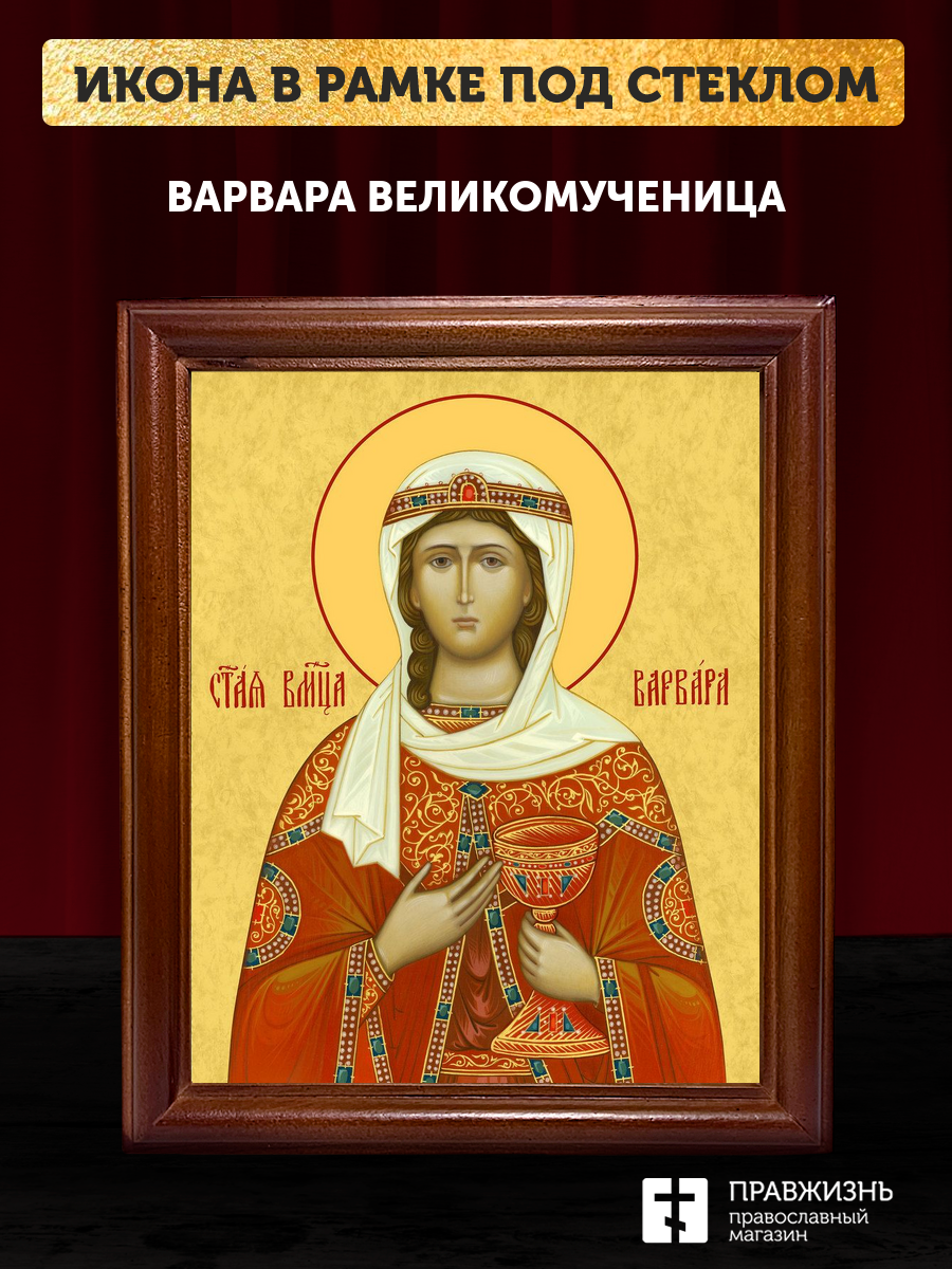 Икона Варвара Илиопольская великомученица, деревянная рамка со стеклом 15х18х2 см 041