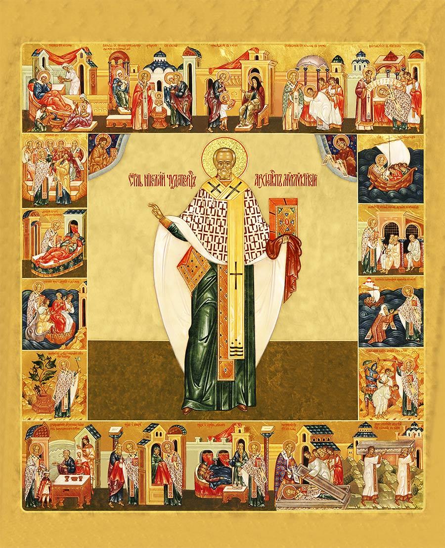 Икона Николай Чудотворец святитель с золочением, деревянная рамка с басмой и стеклом 18х21х2,5 см 11