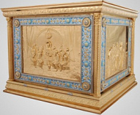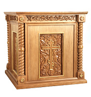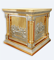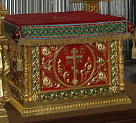 Древнее название – Трапеза, ведь именно на неё возлагается Тело и Кровь (вино и хлеб) Христа. Создавая общую картину алтаря, престол и облачение на престол являются многофункциональными деталями оформления, из-за чего их выбору необходимо уделить особое внимание.