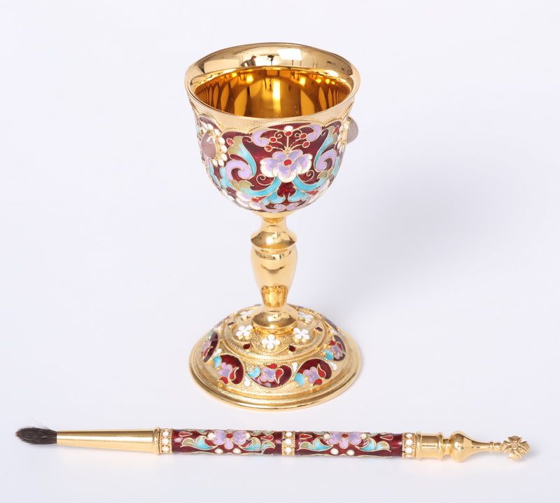 Сосуд для елея + стручец филигрань, эмаль / золочение