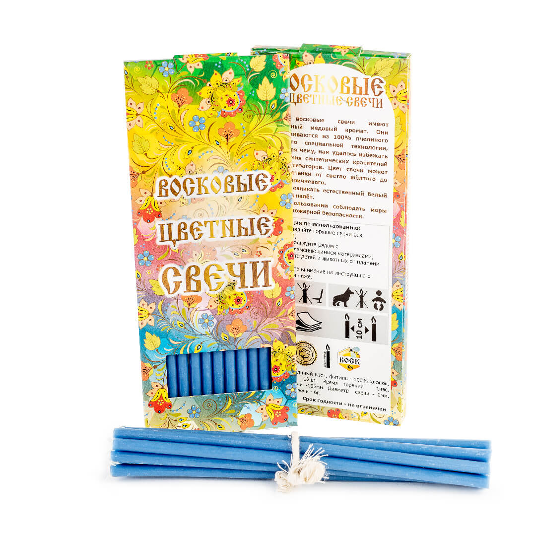 Свечи №80 в коробочке (18см, 1ч, 12шт), ГОЛУБЫЕ