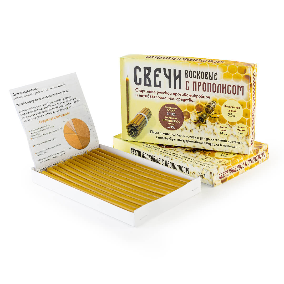 Свечи с прополисом (25шт, 15см, 1,3ч), №3 повышающие иммунитет