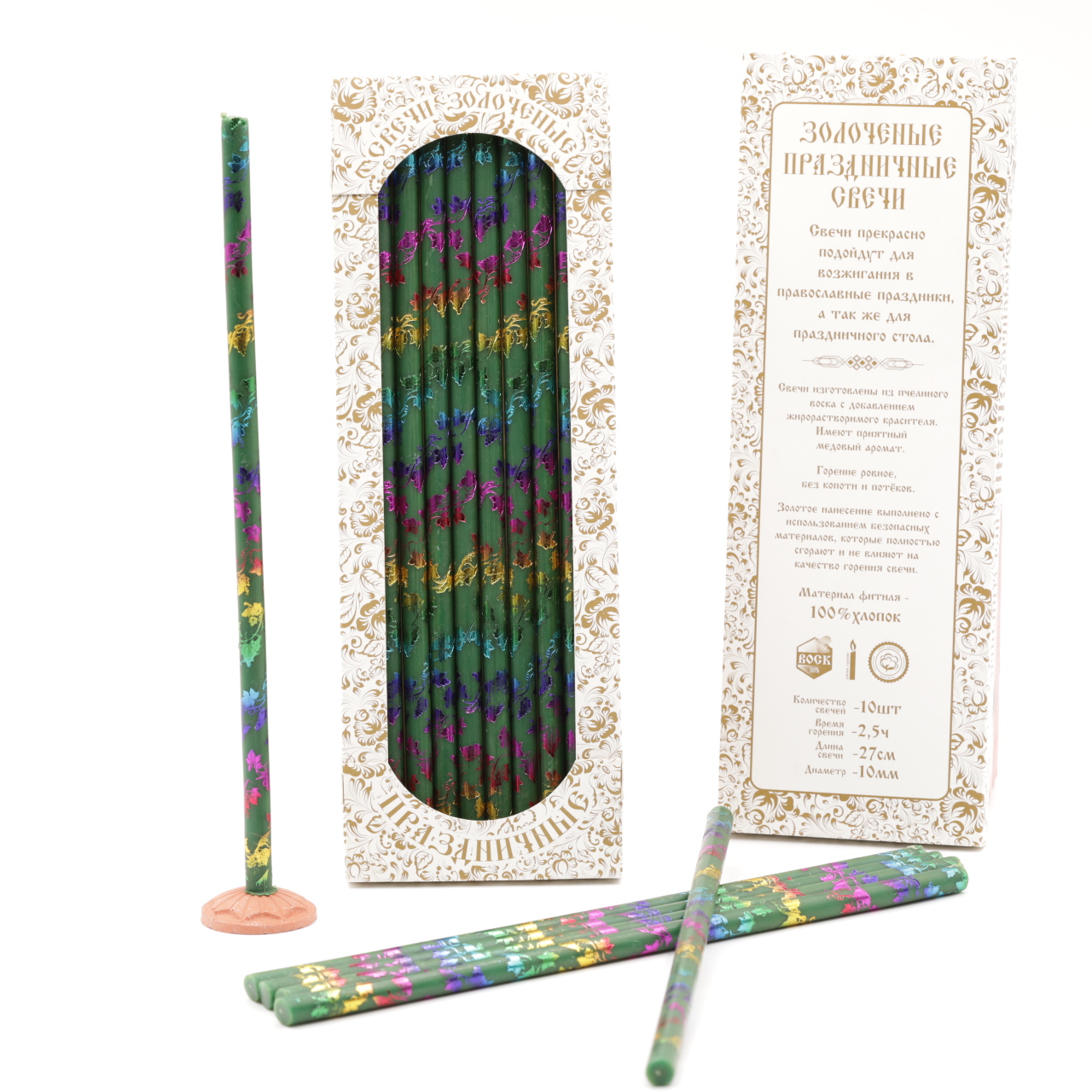 Предлагаем вашему вниманию свечи, Изготовленные по уникальной технологии. Изначально это простые цветные восковые свечи, которые после изготовления подвергаются дополнительной обработке - золочению в виде виноградной лозы, оплетающей свечу. Само золотое покрытие имеет толщину в несколько микрон, отчего полностью сгорает, не оставляя после себя твердых веществ. Выглядят данные свечи просто изумительно, блестят при свете пламени "играя" отблесками золота. Свечи прекрасно подойдут для любого праздника, а так же для праздничного богослужения. Свечи упакованы в коробочку, по 25 шт. Для покупки товара в нашем интернет-магазине выберите понравившийся товар и добавьте его в корзину. Далее перейдите в Корзину и нажмите на «Оформить заказ» или «Быстрый заказ». Когда оформляете быстрый заказ, напишите ФИО, телефон и e-mail. Вам перезвонит менеджер и уточнит условия заказа. По результатам разговора вам придет подтверждение оформления товара на почту или через СМС. Теперь останется только ждать доставки и радоваться новой покупке. Оформление заказа в стандартном режиме выглядит следующим образом. Заполняете полностью форму по последовательным этапам: адрес, способ доставки, оплаты, данные о себе. Советуем в комментарии к заказу написать информацию, которая поможет курьеру вас найти. Нажмите кнопку «Оформить заказ». Оплачивайте покупки удобным способом. В интернет-магазине доступно 3 варианта оплаты: Наличные при самовывозе или доставке курьером. Специалист свяжется с вами в день доставки, чтобы уточнить время и заранее подготовить сдачу с любой купюры. Вы подписываете товаросопроводительные документы, вносите денежные средства, получаете товар и чек. Безналичный расчет при самовывозе или оформлении в интернет-магазине: карты Visa и MasterCard. Чтобы оплатить покупку, система перенаправит вас на сервер системы ASSIST. Здесь нужно ввести номер карты, срок действия и имя держателя. Электронные системы при онлайн-заказе: PayPal, WebMoney и Яндекс.Деньги. Для совершения покупки система перенаправит вас на страницу платежного сервиса. Здесь необходимо заполнить форму по инструкции. Экономьте время на получении заказа. В интернет-магазине доступно 4 варианта доставки: Курьерская доставка работает с 9.00 до 19.00. Когда товар поступит на склад, курьерская служба свяжется для уточнения деталей. Специалист предложит выбрать удобное время доставки и уточнит адрес. Осмотрите упаковку на целостность и соответствие указанной комплектации. Самовывоз из магазина. Список торговых точек для выбора появится в корзине. Когда заказ поступит на склад, вам придет уведомление. Для получения заказа обратитесь к сотруднику в кассовой зоне и назовите номер. Постамат. Когда заказ поступит на точку, на ваш телефон или e-mail придет уникальный код. Заказ нужно оплатить в терминале постамата. Срок хранения — 3 дня. Почтовая доставка через почту России. Когда заказ придет в отделение, на ваш адрес придет извещение о посылке. Перед оплатой вы можете оценить состояние коробки: вес, целостность. Вскрывать коробку самостоятельно вы можете только после оплаты заказа. Один заказ может содержать не больше 10 позиций и его стоимость не должна превышать 100 000 р. Дополнительная вкладка, для размещения информации о магазине, доставке или любого другого важного контента. Поможет вам ответить на 