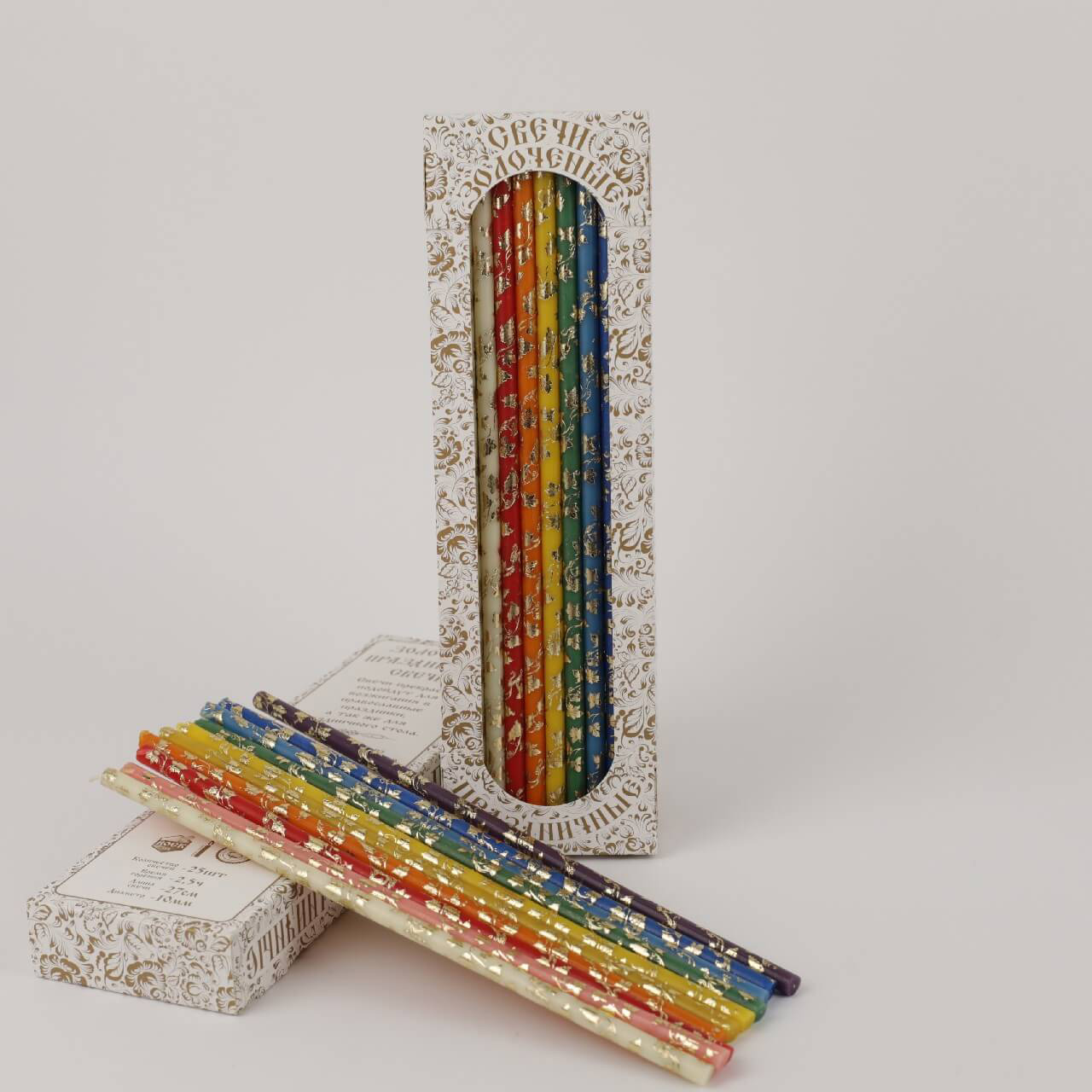 Свечи праздничные №20/40 (уп 25шт), РАЗНОЦВЕТНЫЕ (10 цветов) (Золотая лоза)